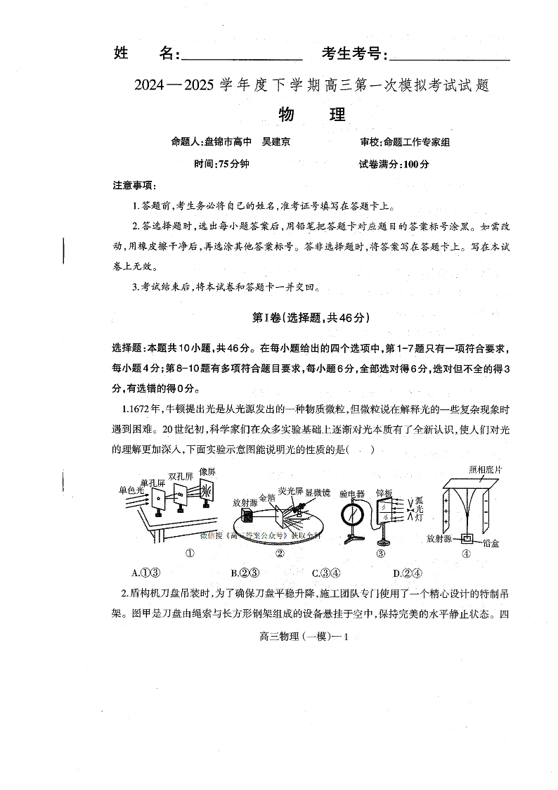 辽宁省协作校2025届高三下学期第一次模拟考试 物理.pdf