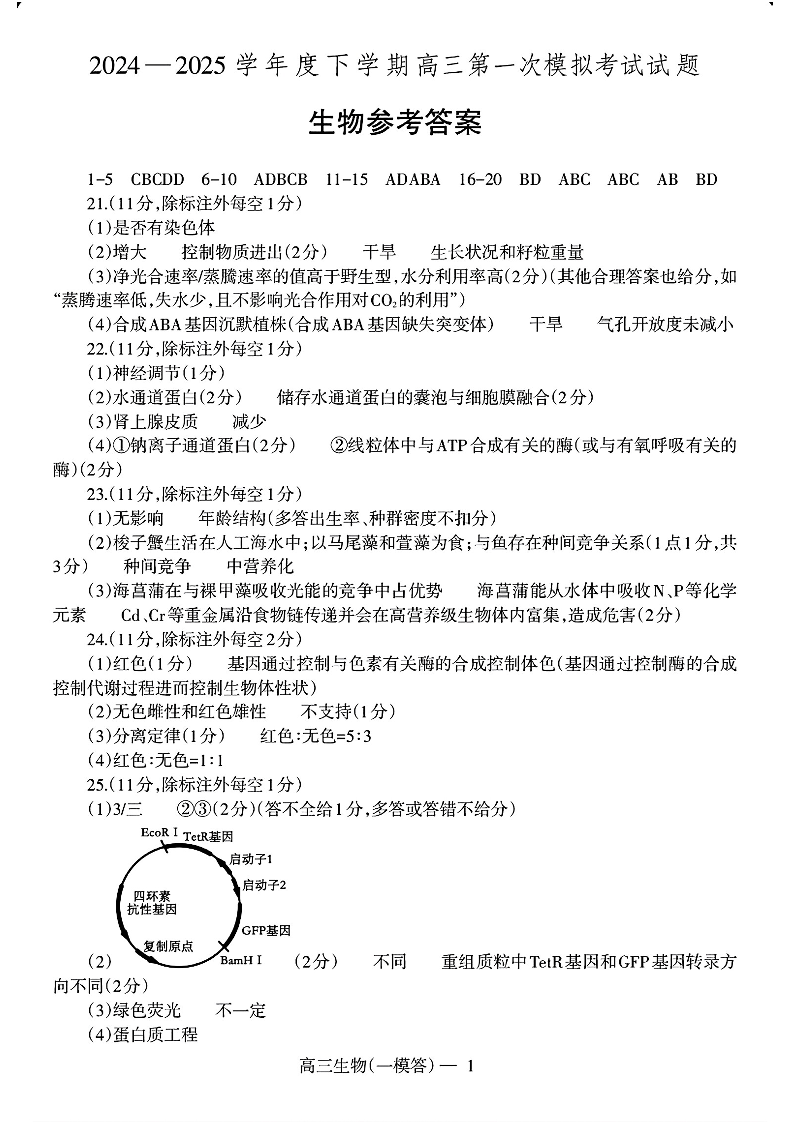 辽宁省协作校2025届高三下学期第一次模拟考试 生物答案.pdf