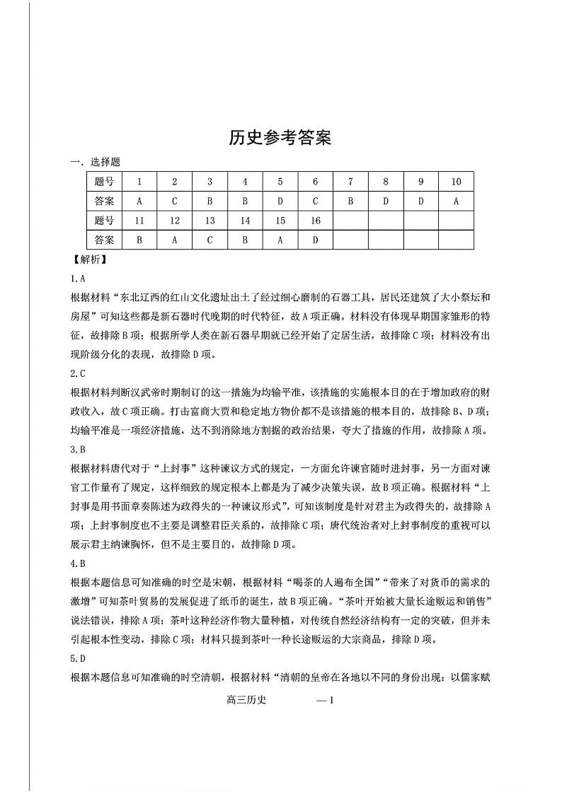 辽宁省协作校2025届高三下学期第一次模拟考试 历史答案.pdf