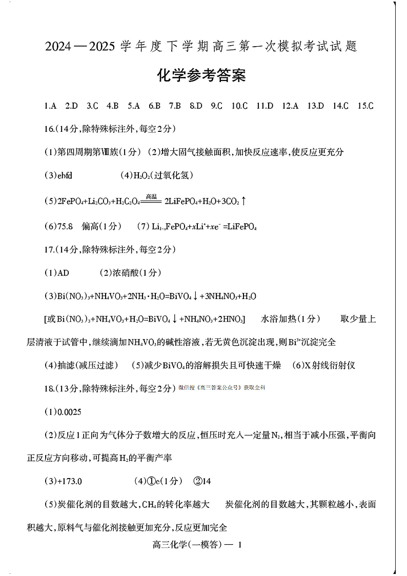 辽宁省协作校2025届高三下学期第一次模拟考试 化学答案.pdf