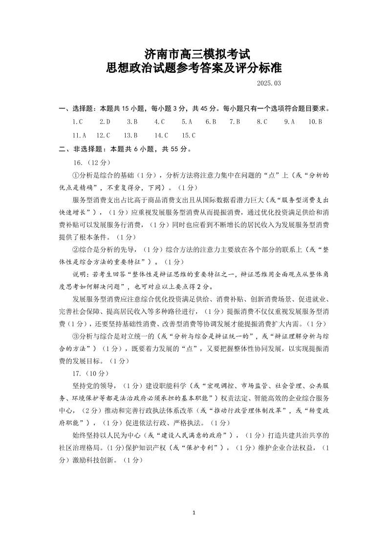 2025年3月济南市高三模拟考试 政治答案.pdf