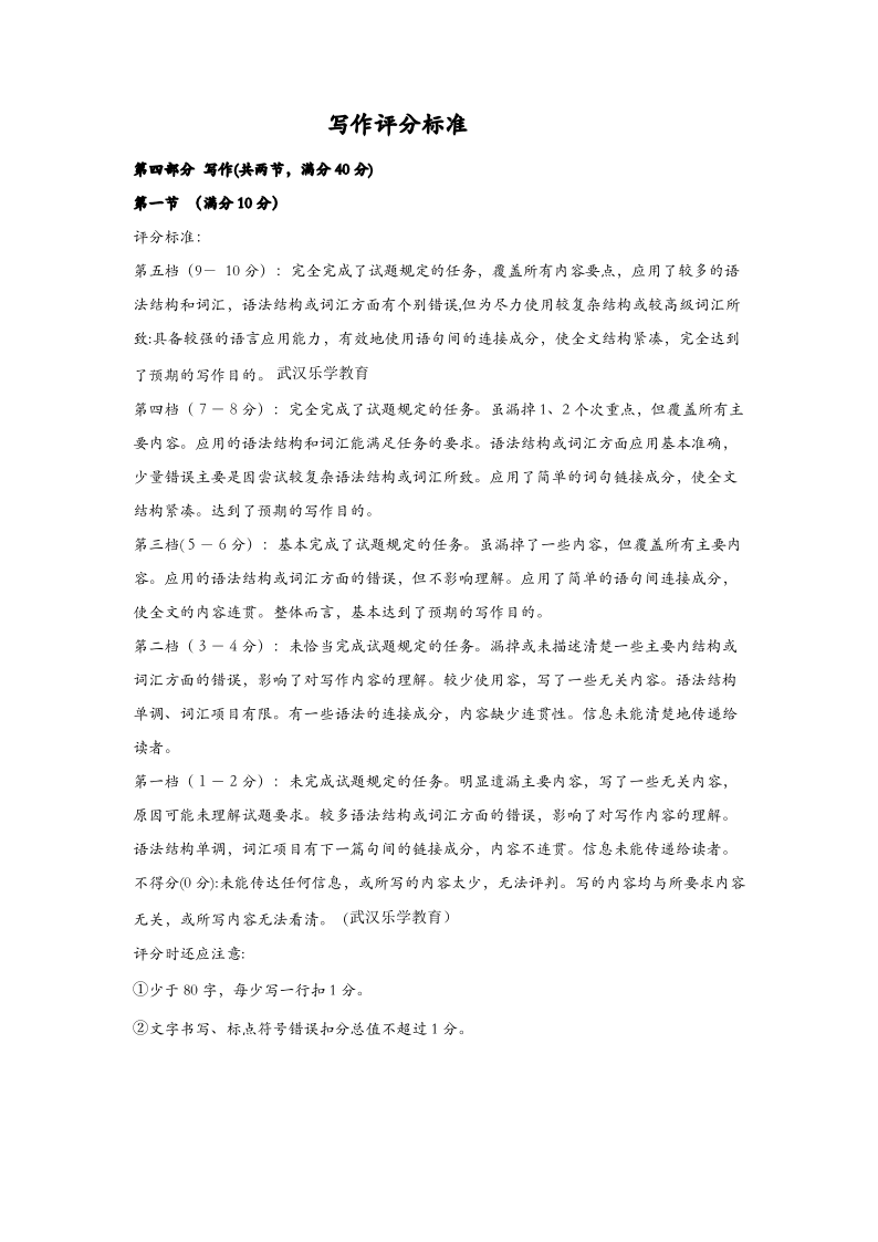 湖北省高中名校联盟2025届高三三月联合测评 日语写作评分标准参考.pdf