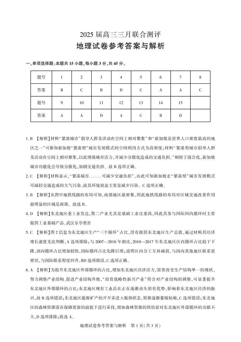 湖北省高中名校联盟2025届高三三月联合测评 地理答案.pdf