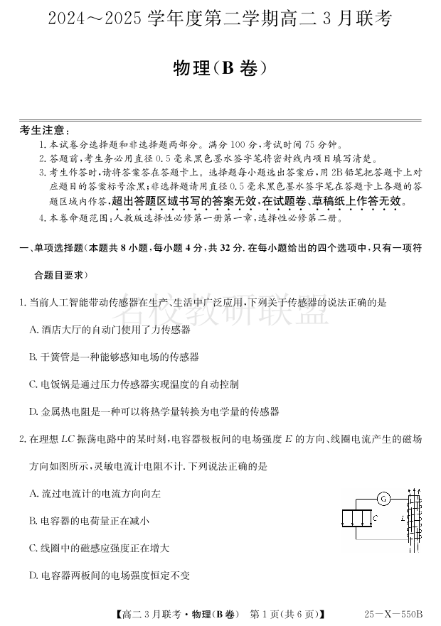 安徽省县中联盟2024-2025学年高二下学期3月联考试题 物理(含答案).pdf