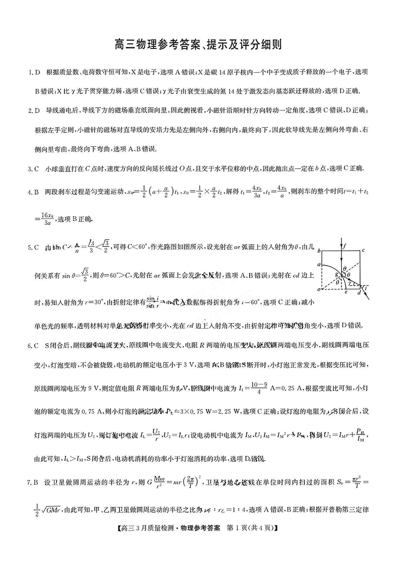 九师联盟2025届高三年级下学期3月质量检测 物理答案.pdf