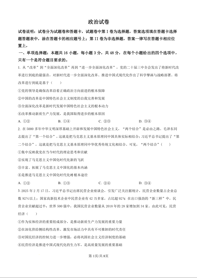 黑龙江省齐齐哈尔市2025届高三下学期二模考试 政治.docx