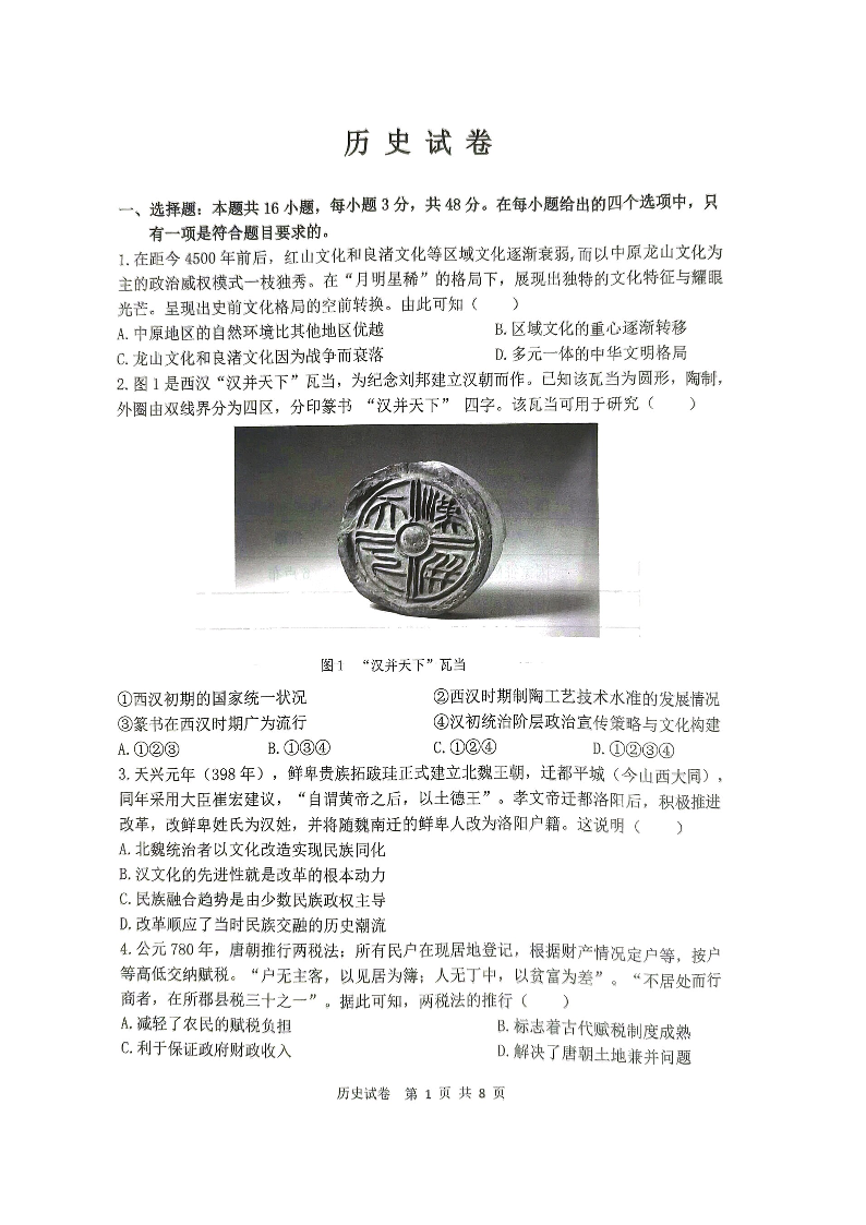 黑龙江省齐齐哈尔市2025届高三下学期二模考试 历史.pdf