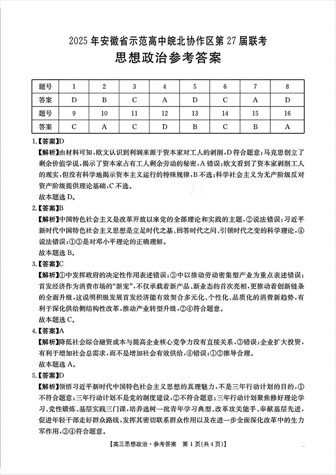 2025年安徽省示范高中皖北协作区第27届联考 政治答案.pdf