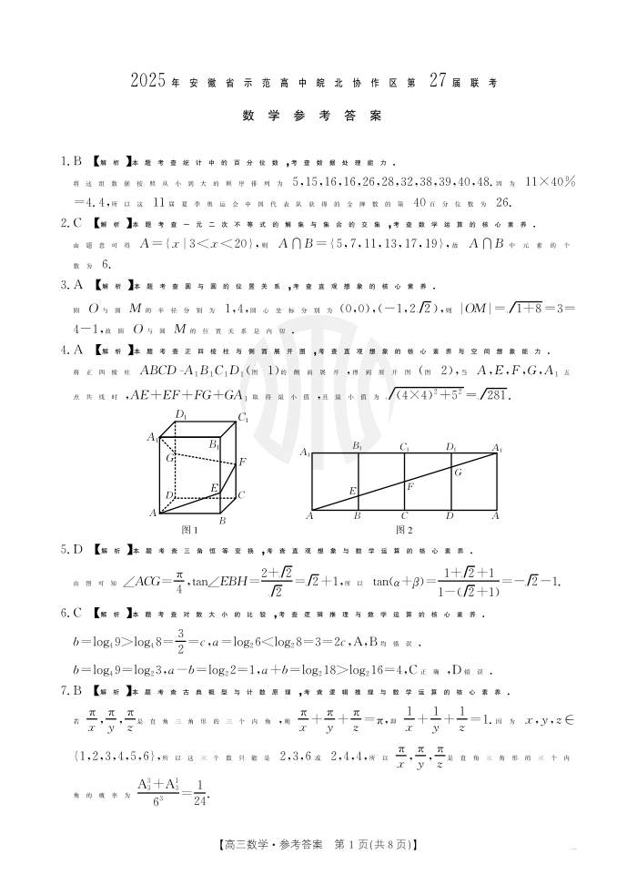 2025年安徽省示范高中皖北协作区第27届联考 数学答案.pdf