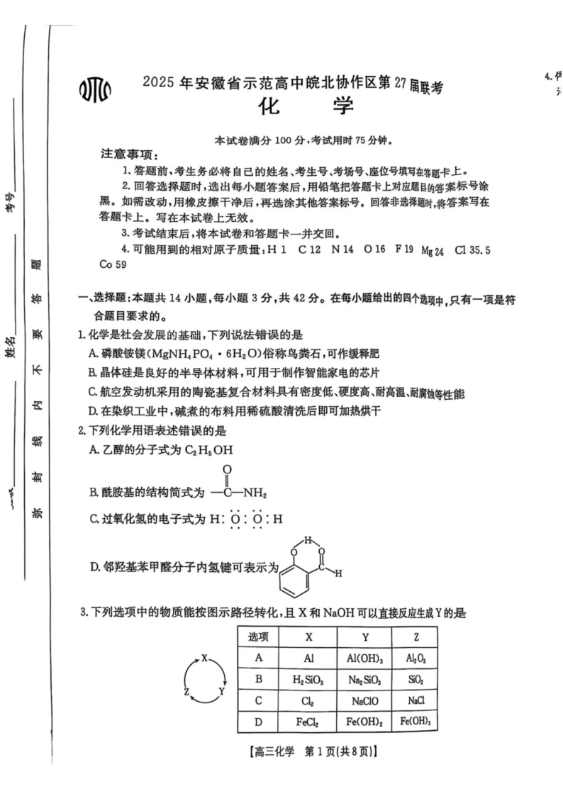 2025年安徽省示范高中皖北协作区第27届联考 化学.pdf