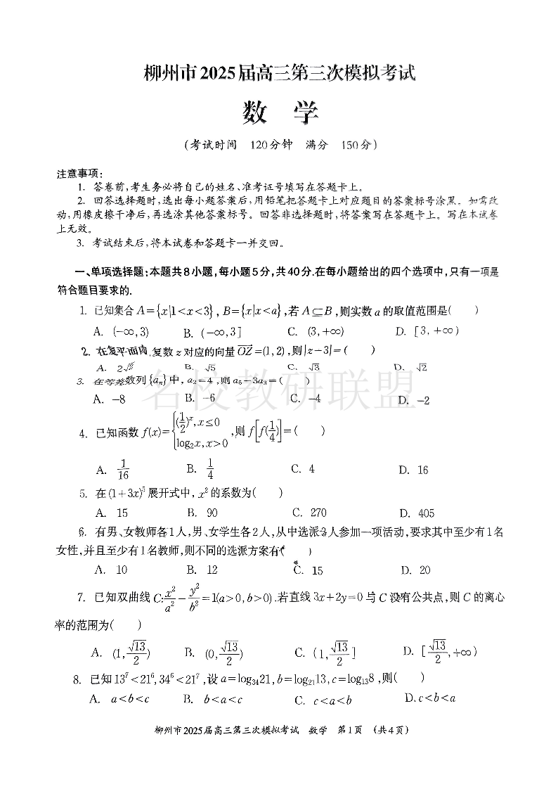 柳州2025年3月高三三模 数学.pdf