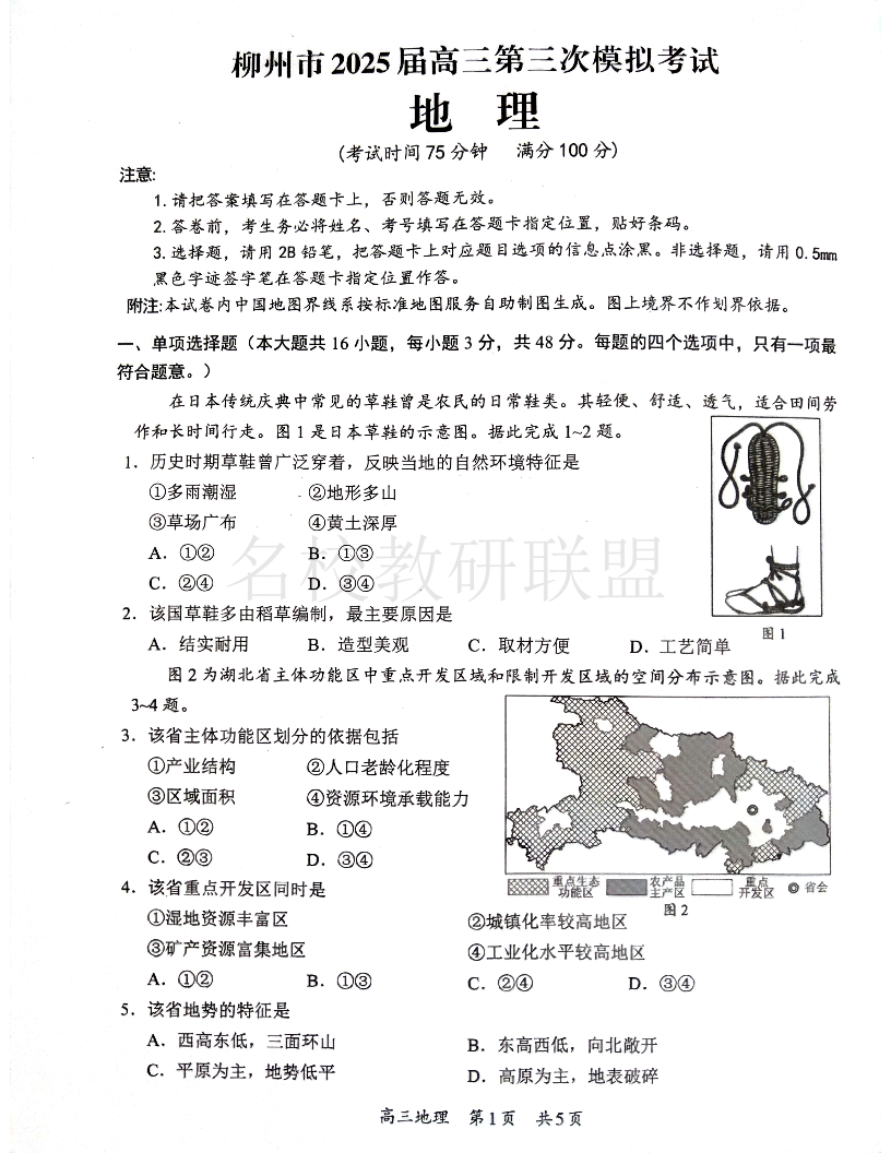 柳州2025年3月高三三模 地理.pdf