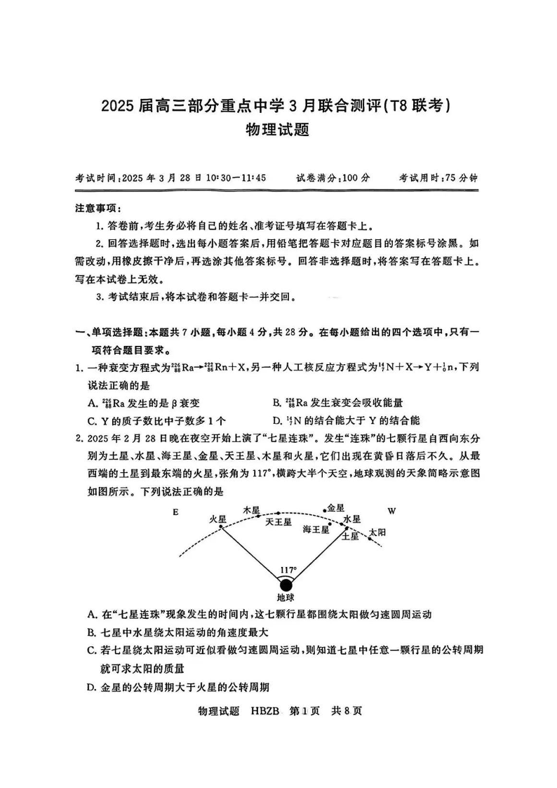 【河北版】2025届高三部分重点中学3月联合测评 物理(含答案).pdf