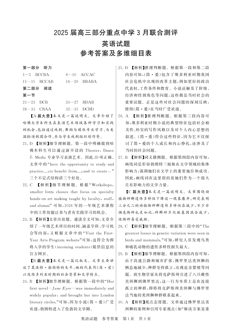 【T8联考】2025届高三部分重点中学3月联合测评 英语答案.pdf