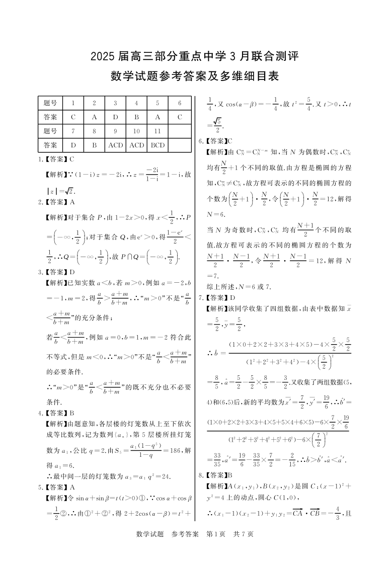 【T8联考】2025届高三部分重点中学3月联合测评 数学答案.pdf