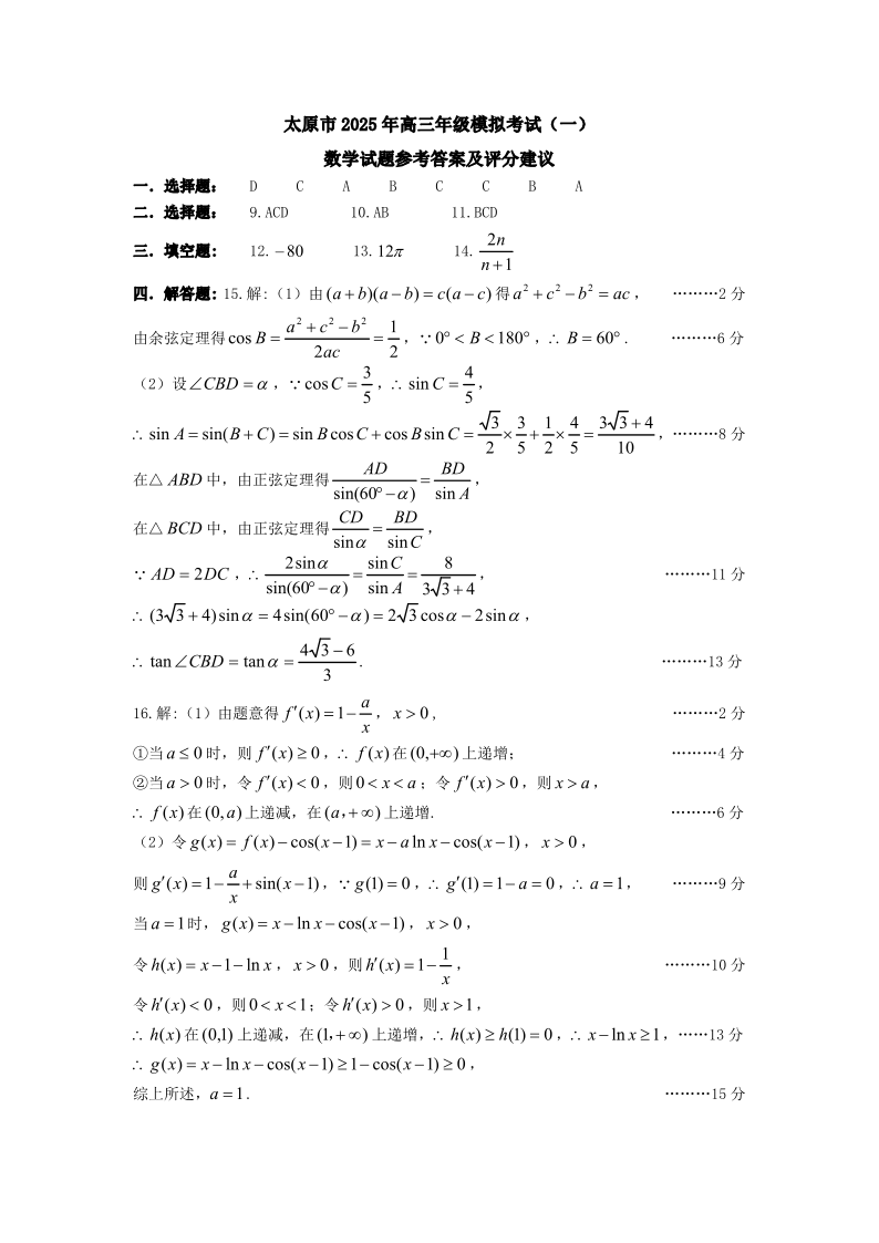 太原市2025年高三年级模拟考试(一)数学答案.pdf