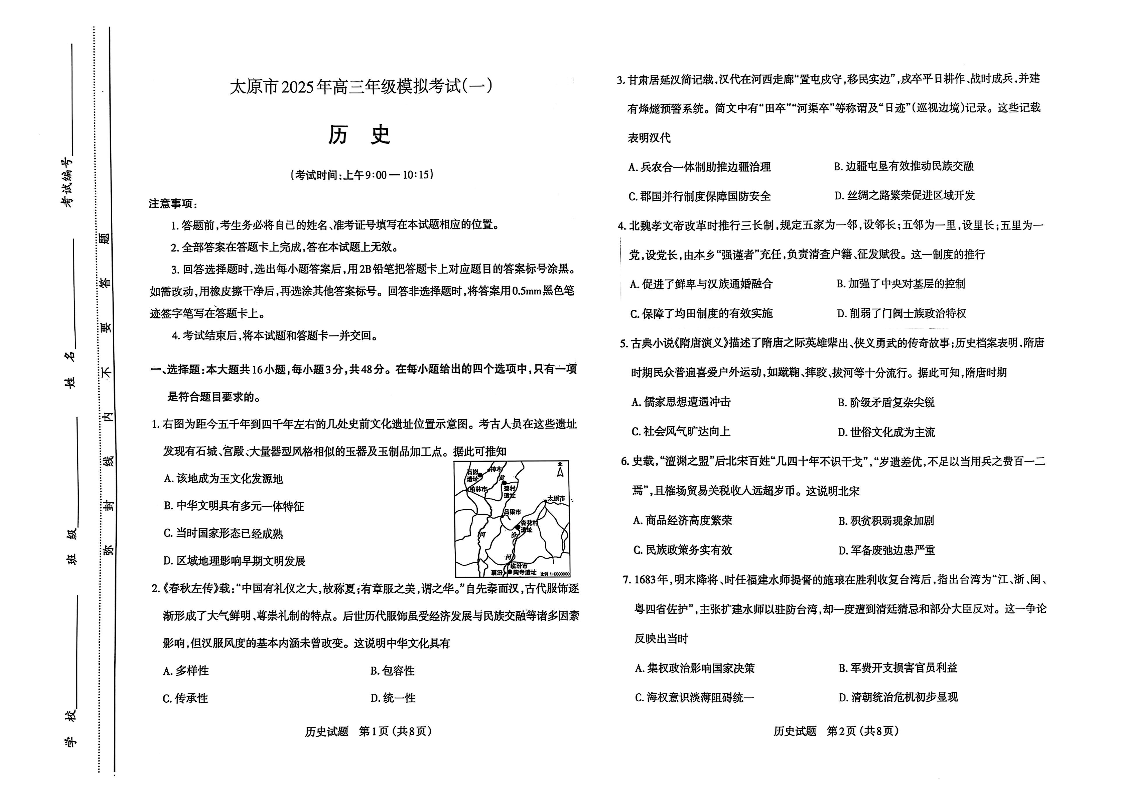 太原市2025年高三年级模拟考试(一)历史.pdf