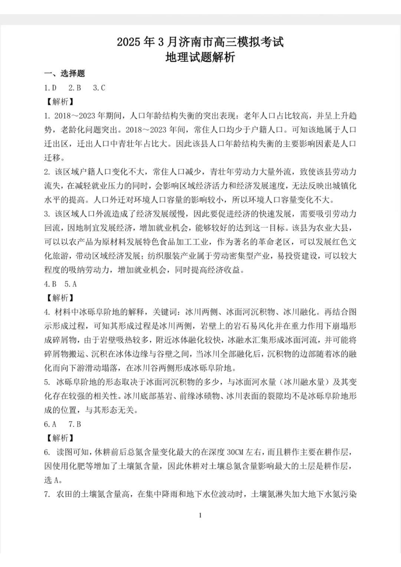 2025年3月济南市高三模拟考试 地理答案.pdf