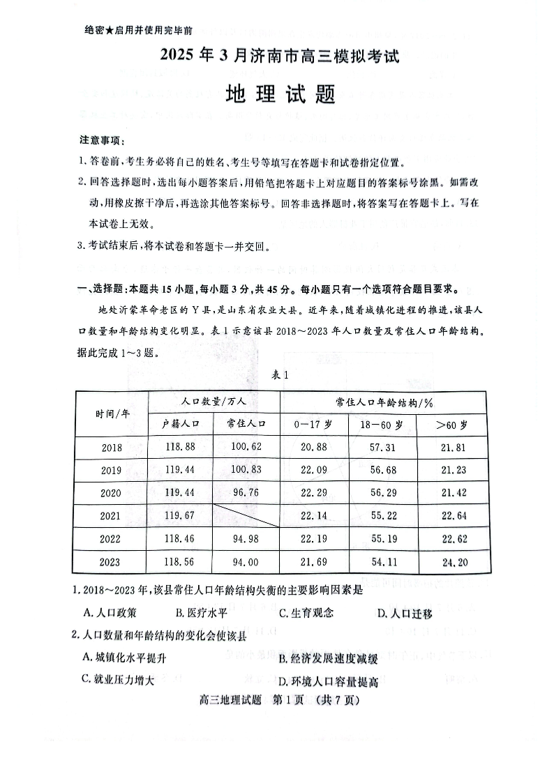 2025年3月济南市高三模拟考试 地理.pdf