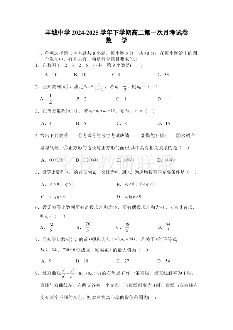 江西省丰城中学2024-2025学年高二下学期3月第一次段考试题 数学(含答案).pdf