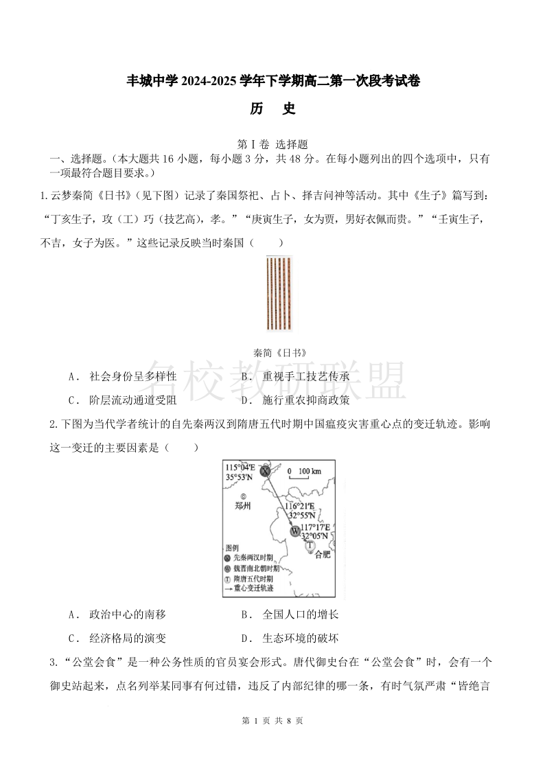 江西省丰城中学2024-2025学年高二下学期3月第一次段考试题 历史(含答案).pdf