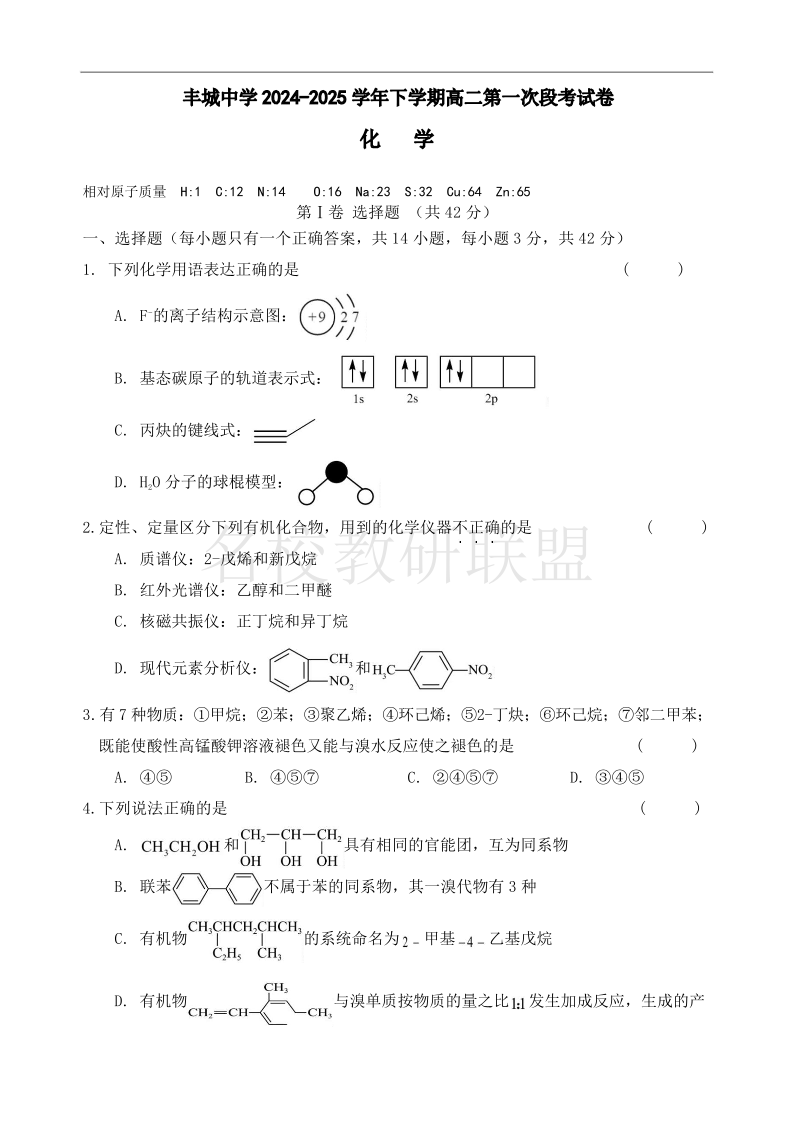江西省丰城中学2024-2025学年高二下学期3月第一次段考试题 化学(含答案).pdf
