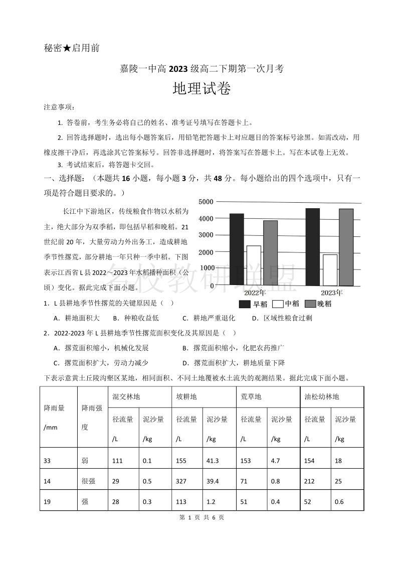 嘉陵一中2023级高二下期第一次月考 地理.pdf