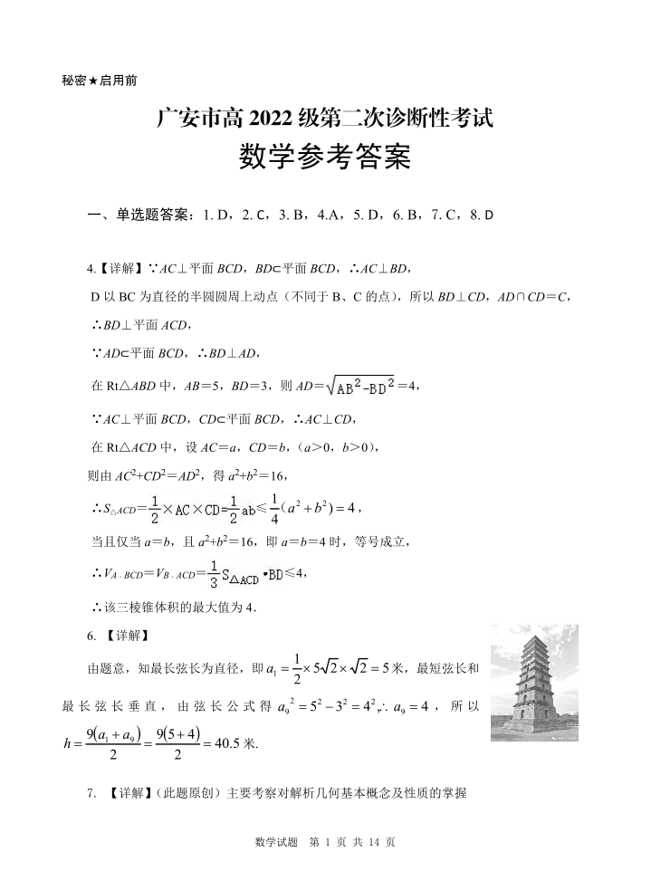 四川省广安市高2022级第二次诊断性考试 数学答案.pdf