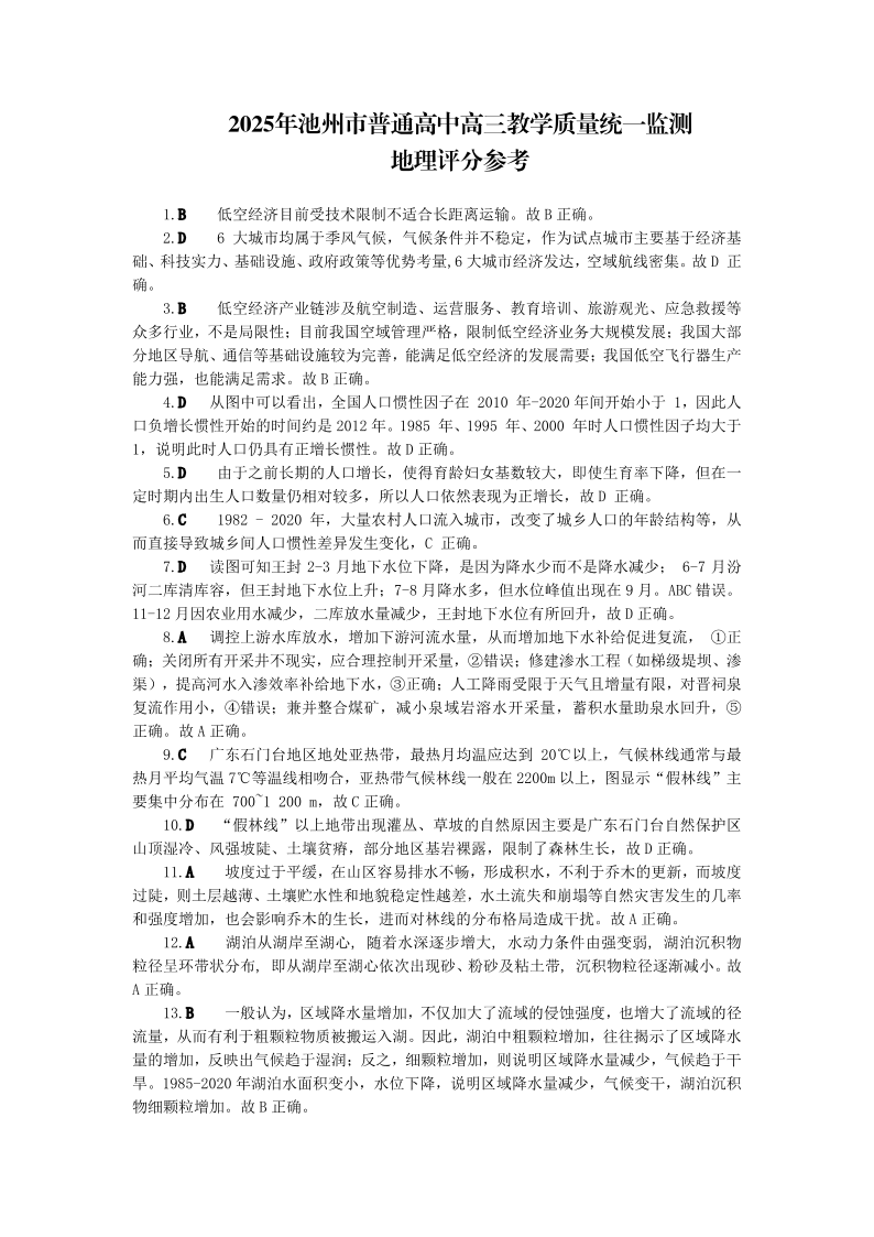 2025年池州市普通高中高三教学质量统一监测 地理答案.pdf