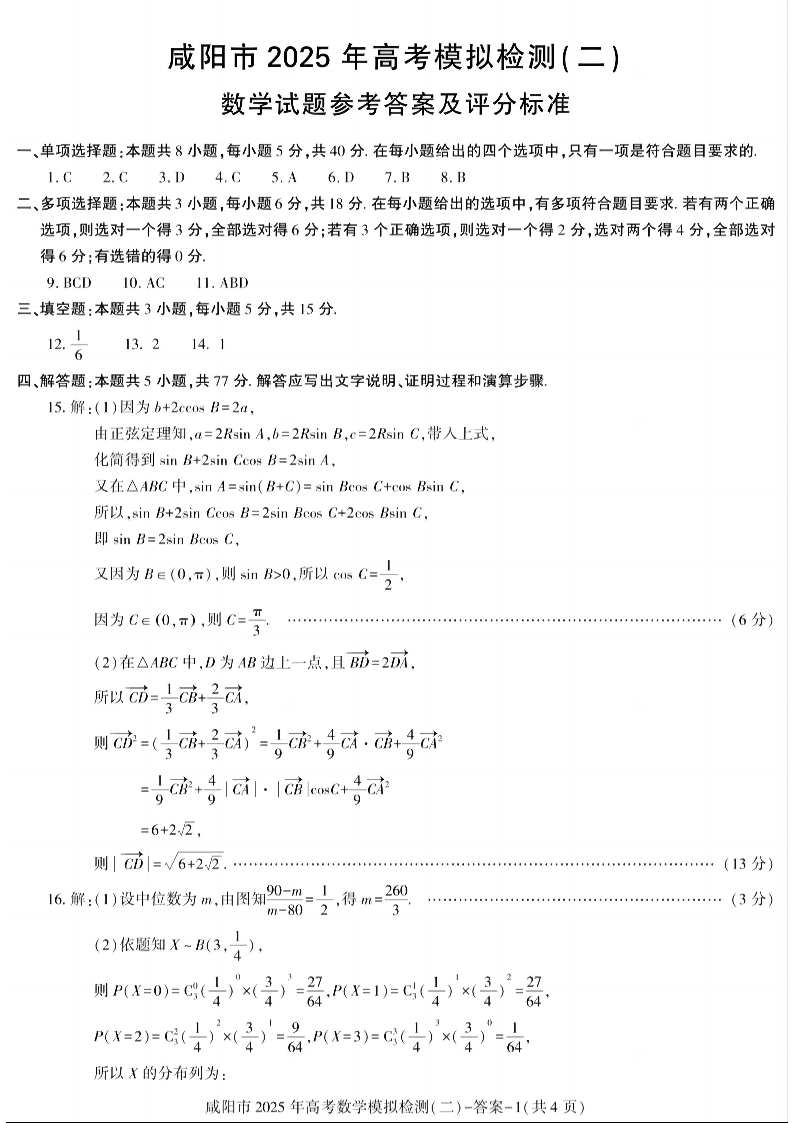 陕西省咸阳市2025年高考模拟检测(二)数学答案.pdf