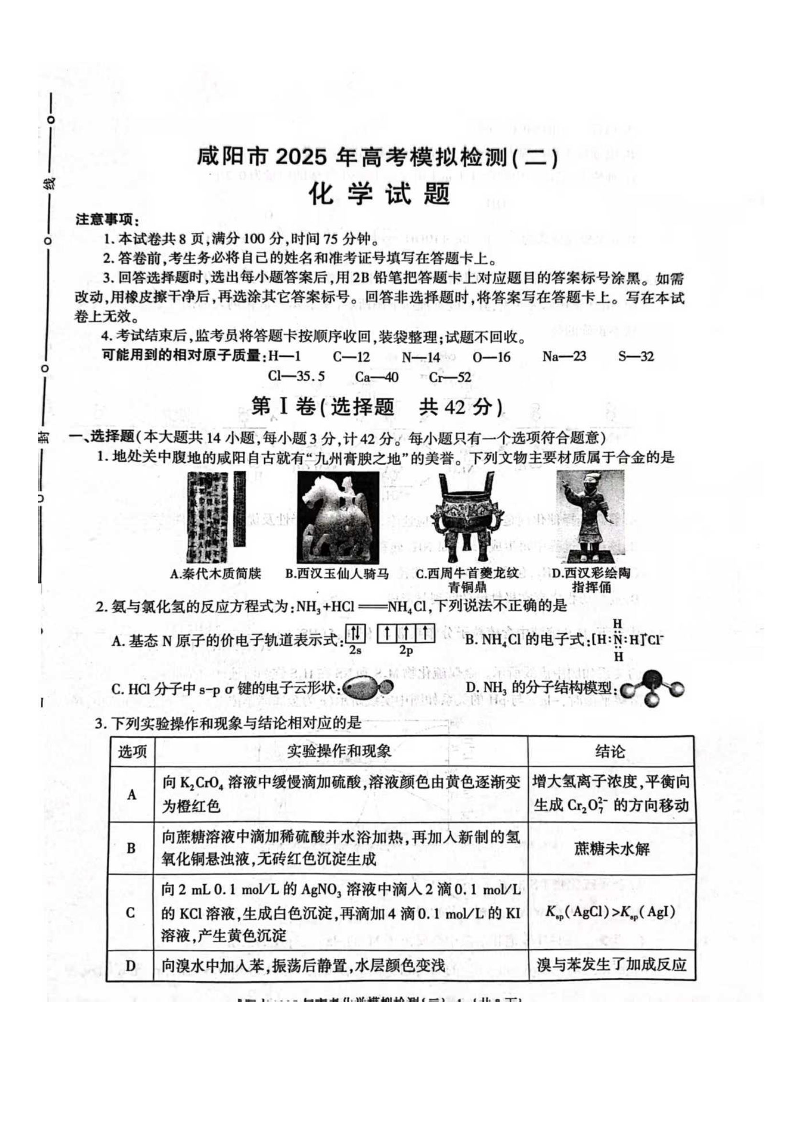 陕西省咸阳市2025年高考模拟检测(二)化学.pdf