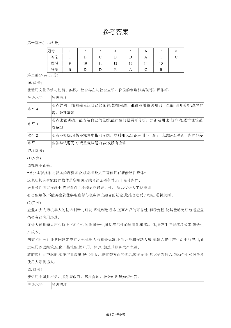 北京市朝阳区2025年高三年级第二学期质量检测一 政治答案.pdf