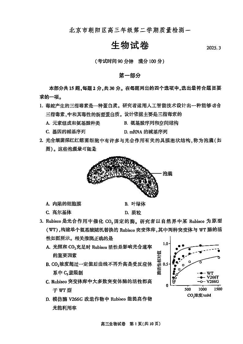 北京市朝阳区2025年高三年级第二学期质量检测一 生物.pdf