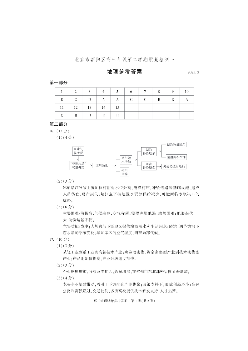 北京市朝阳区2025年高三年级第二学期质量检测一 地理答案.pdf