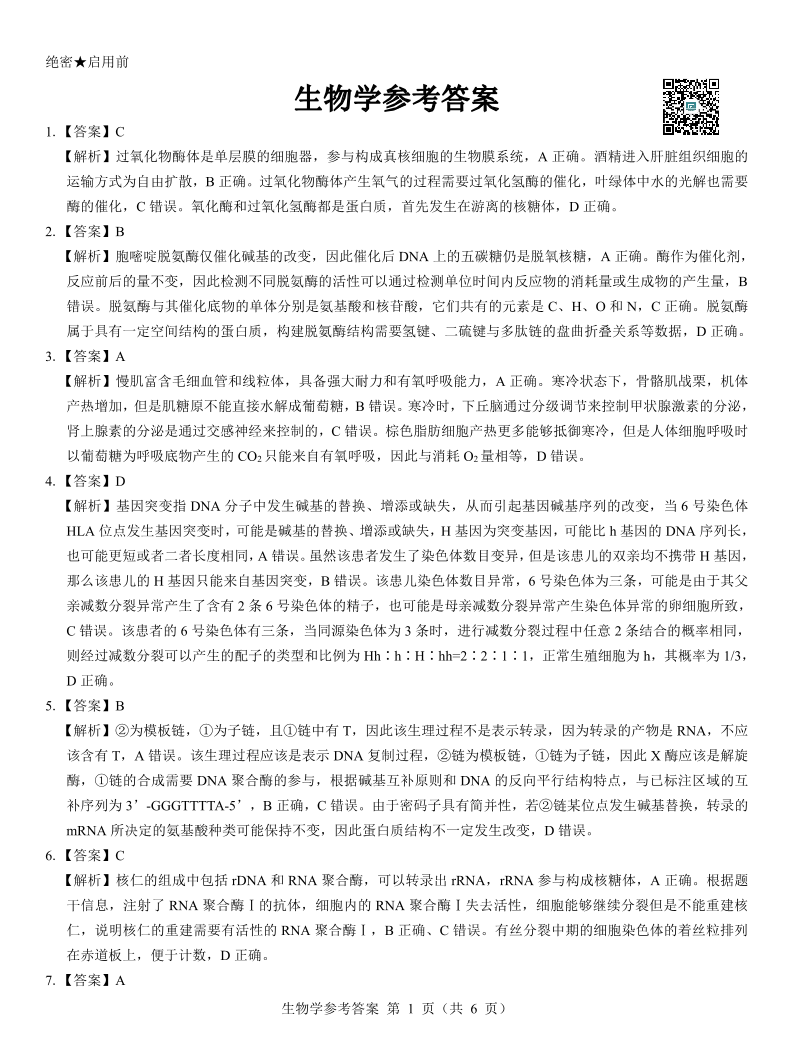 名校教研联盟2025届高三3月联考 生物参考答案.pdf