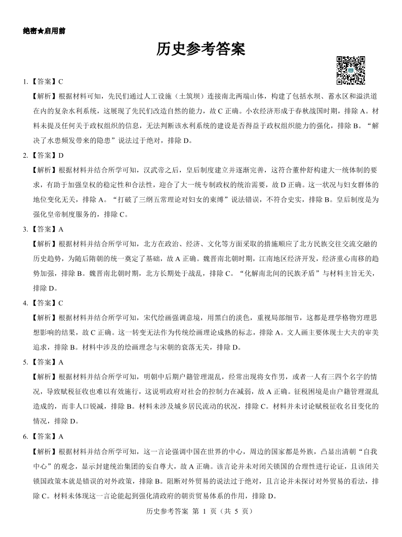 名校教研联盟2025届高三3月联考 历史参考答案.pdf