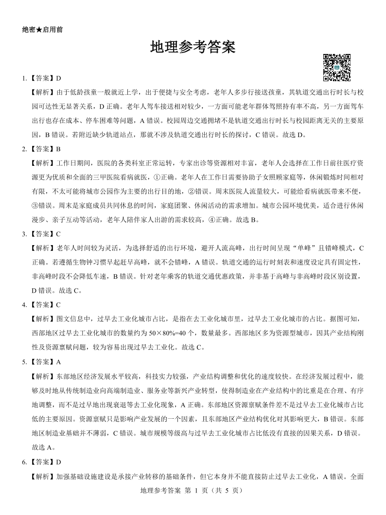 名校教研联盟2025届高三3月联考 地理参考答案.pdf