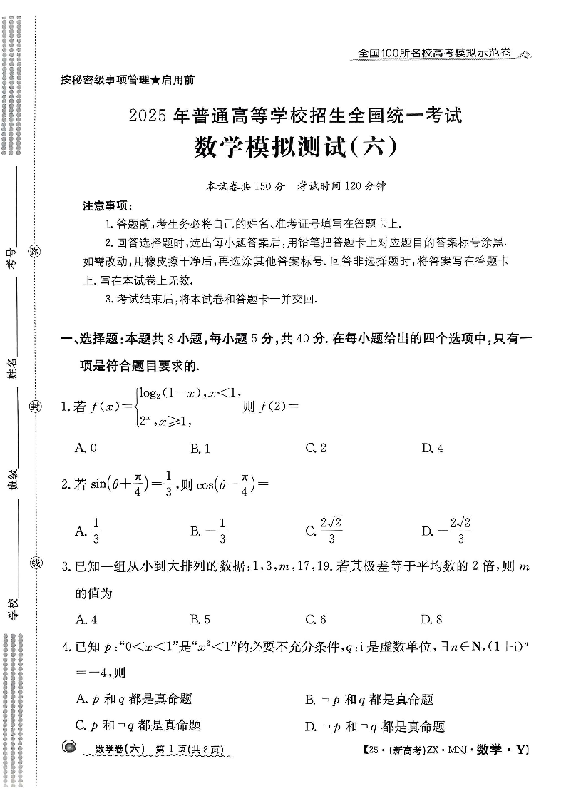 【6】2025年全国100所名校高考模拟示范卷数学(六).pdf