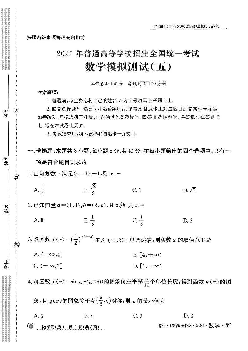 【5】2025年全国100所名校高考模拟示范卷数学(五).pdf