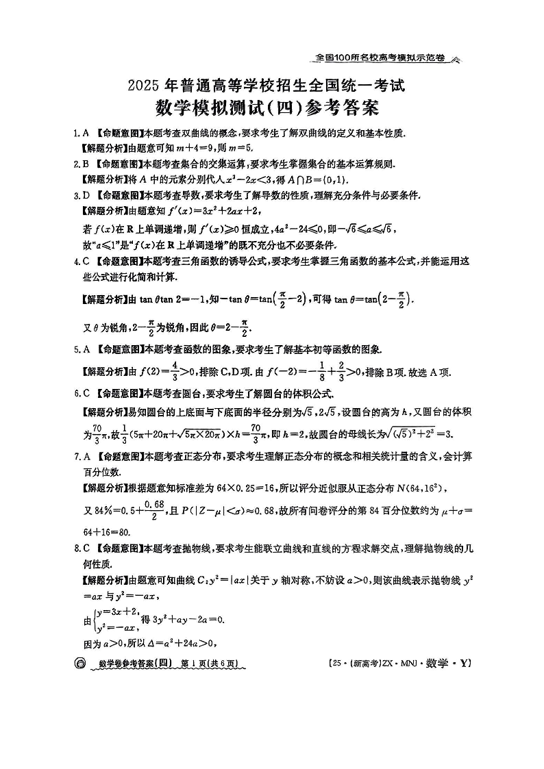 【4】2025年全国100所名校高考模拟示范卷数学(四)答案.pdf
