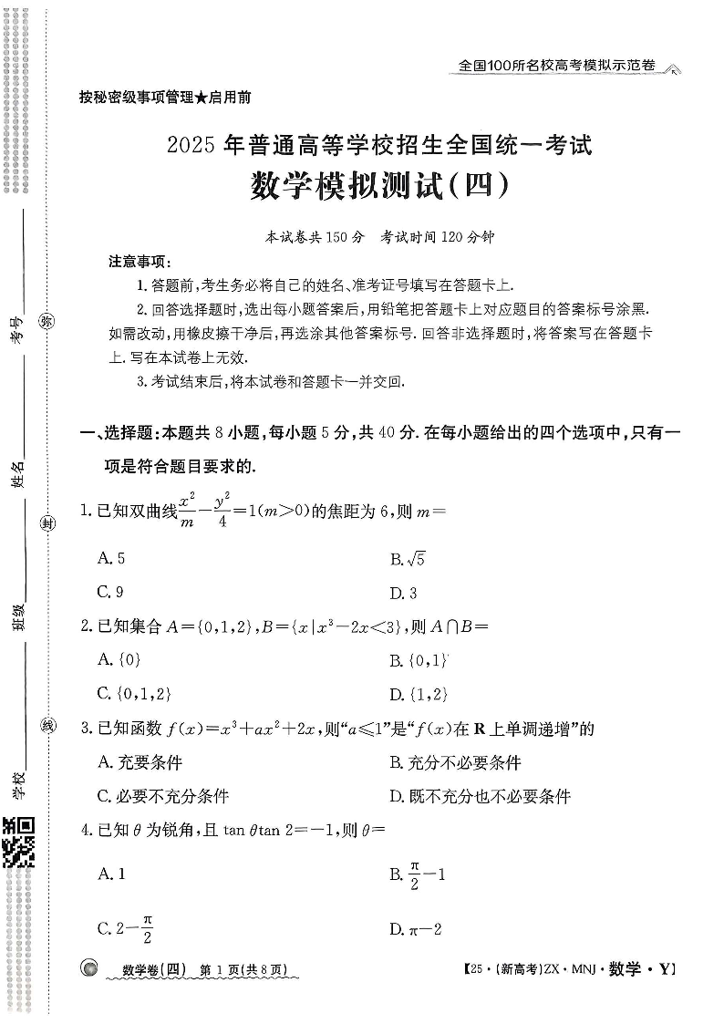 【4】2025年全国100所名校高考模拟示范卷数学(四).pdf