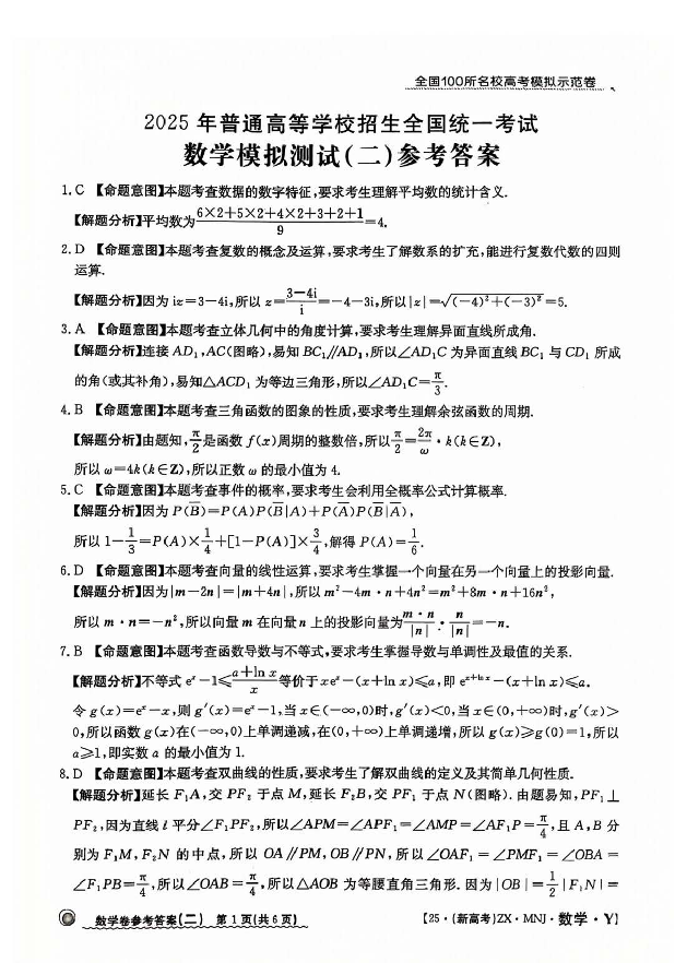 【2】2025年全国100所名校高考模拟示范卷数学(二)答案.pdf