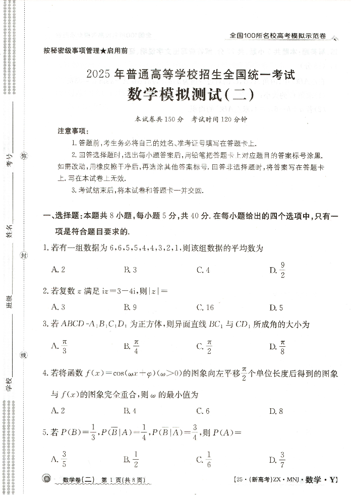 【2】2025年全国100所名校高考模拟示范卷数学(二).pdf