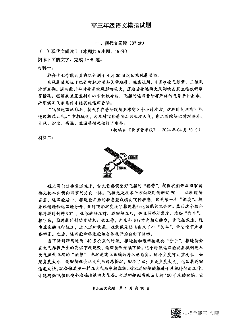 山西大学附属中学校2024-2025学年高三下学期3月月考 语文.pdf