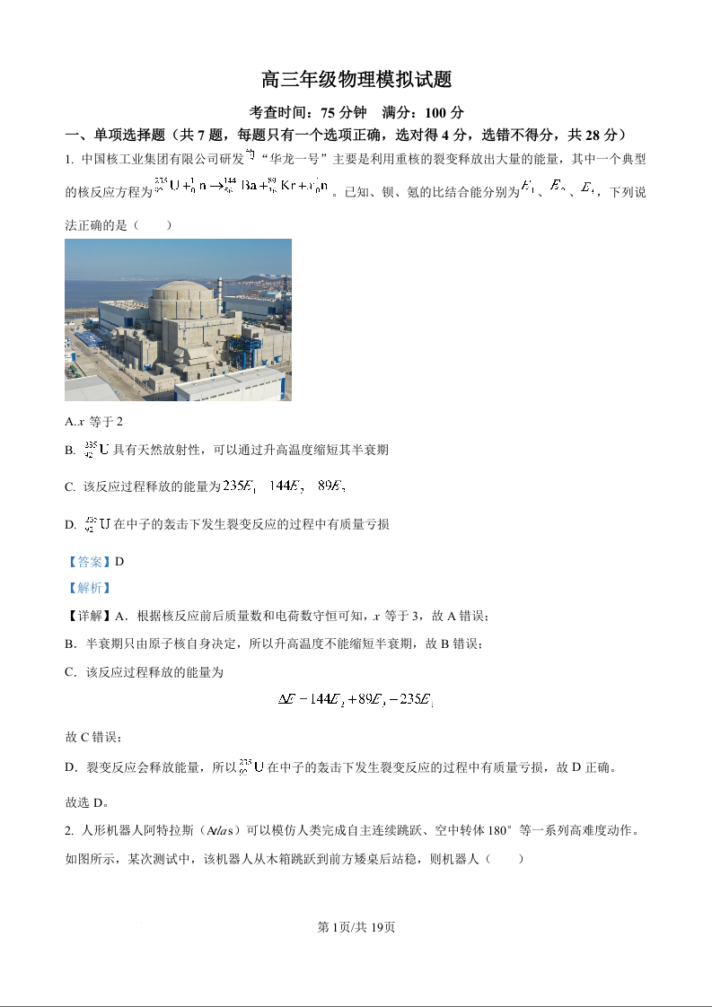 山西大学附属中学校2024-2025学年高三下学期3月月考 物理答案.docx