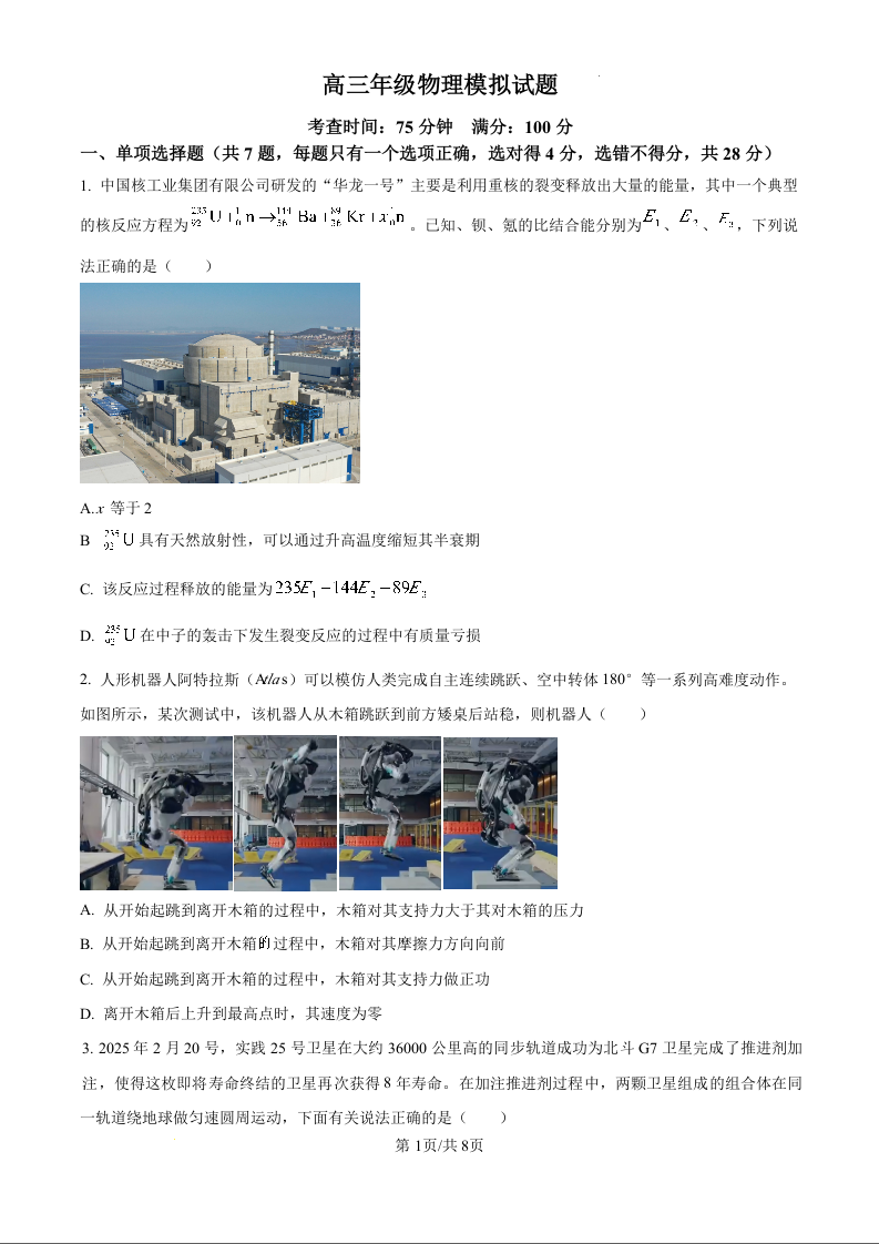 山西大学附属中学校2024-2025学年高三下学期3月月考 物理.docx