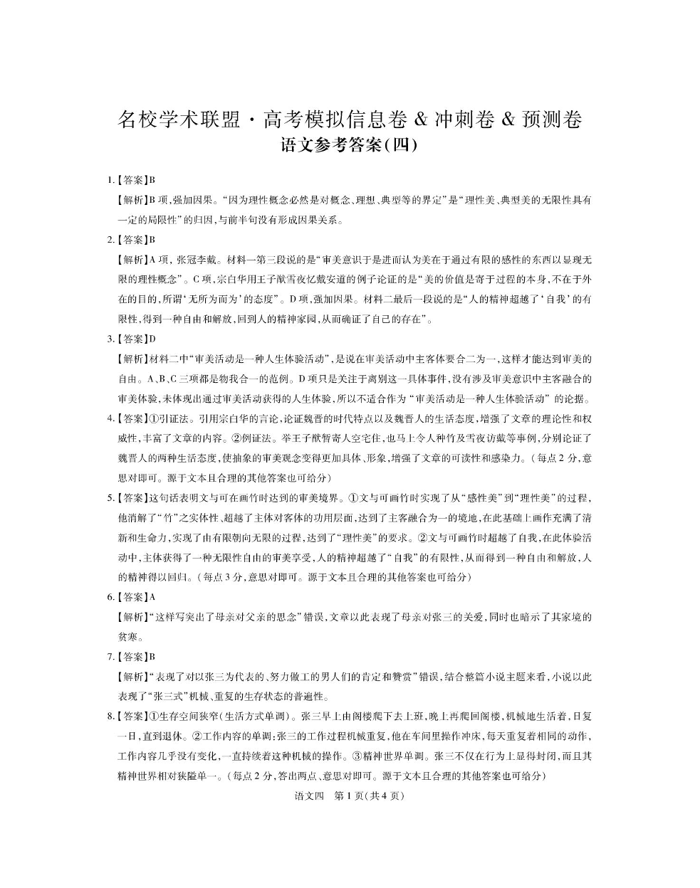2025届名校学术联盟高三下学期模拟冲刺卷(四) 语文答案.pdf