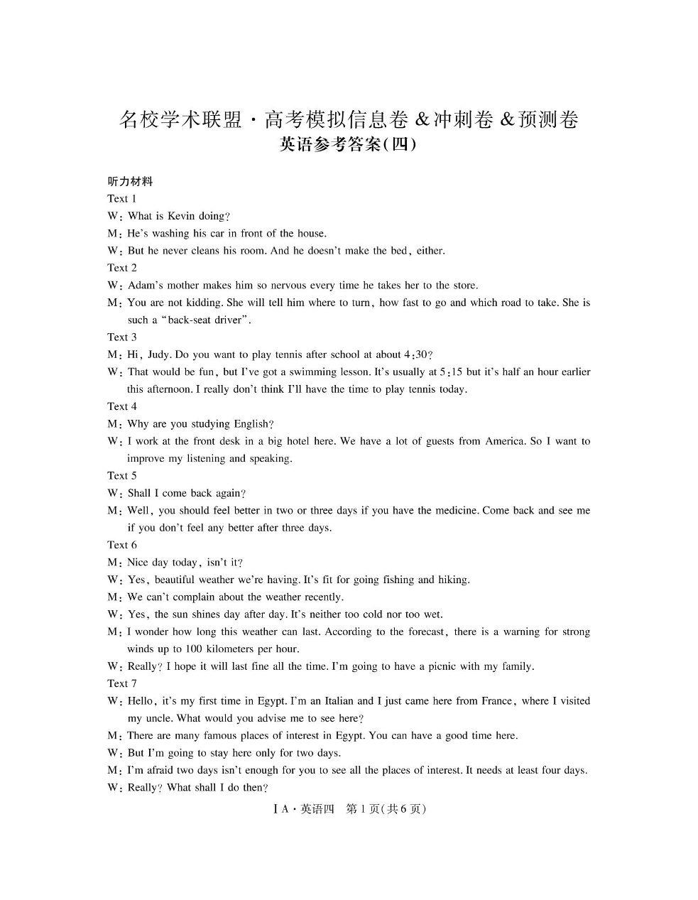 2025届名校学术联盟高三下学期模拟冲刺卷(四) 英语答案.pdf