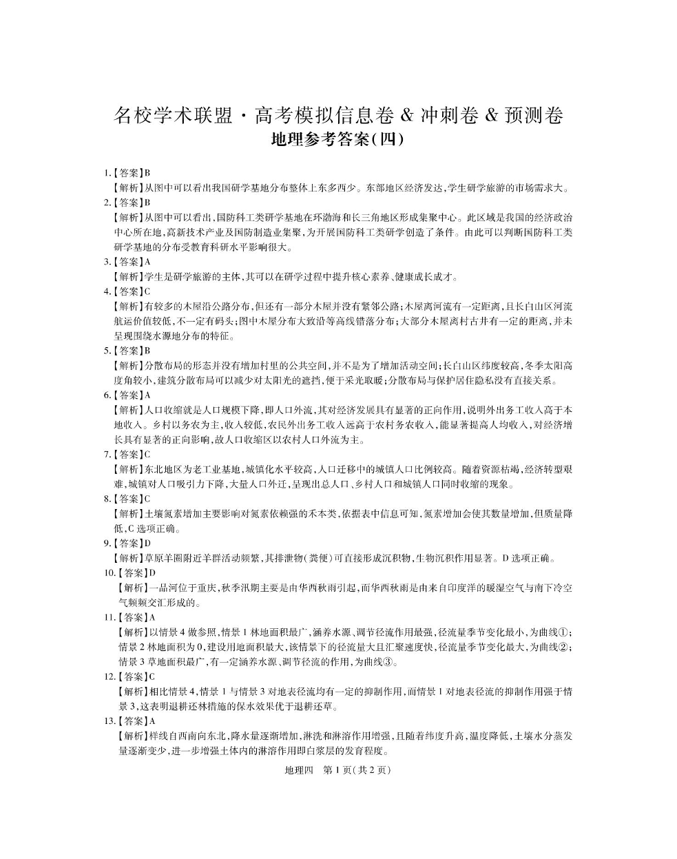 2025届名校学术联盟高三下学期模拟冲刺卷(四) 地理答案.pdf