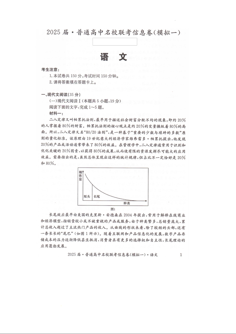 湖南省2025届普通高中名校联考信息卷(模拟一)语文.docx